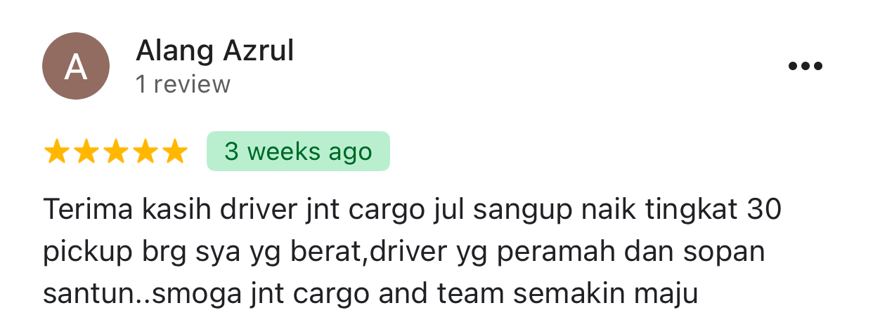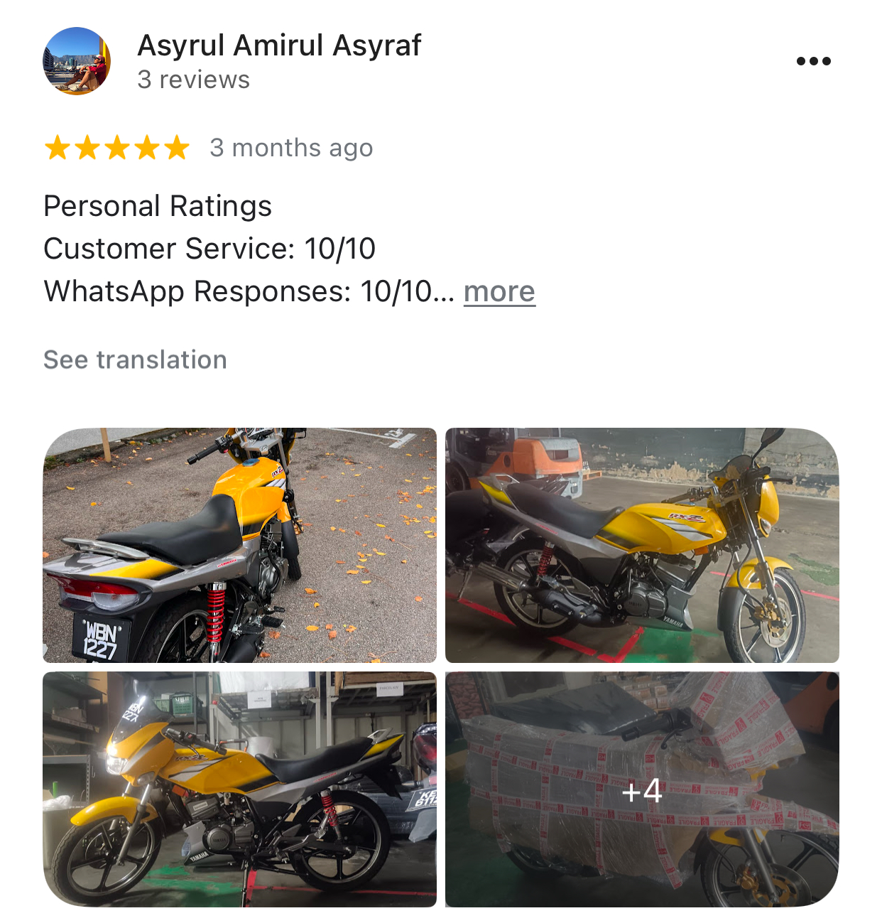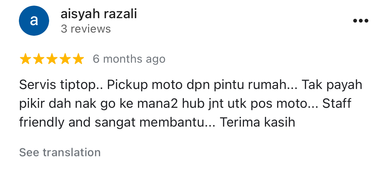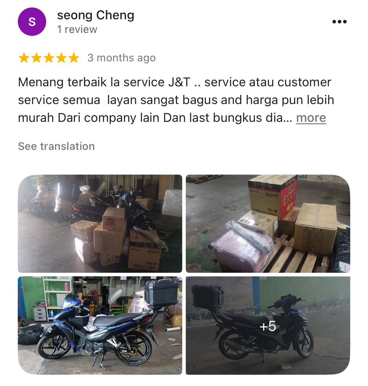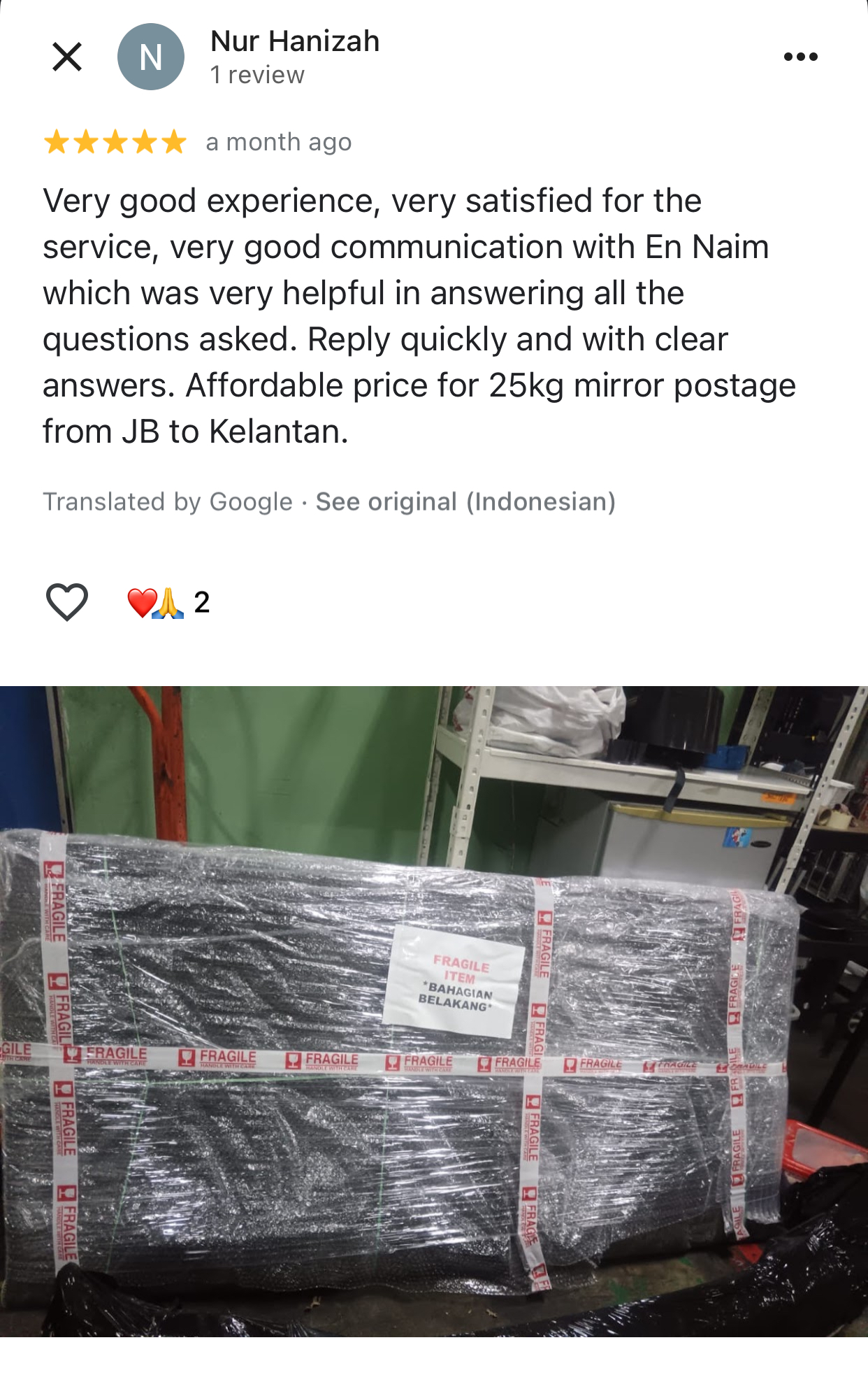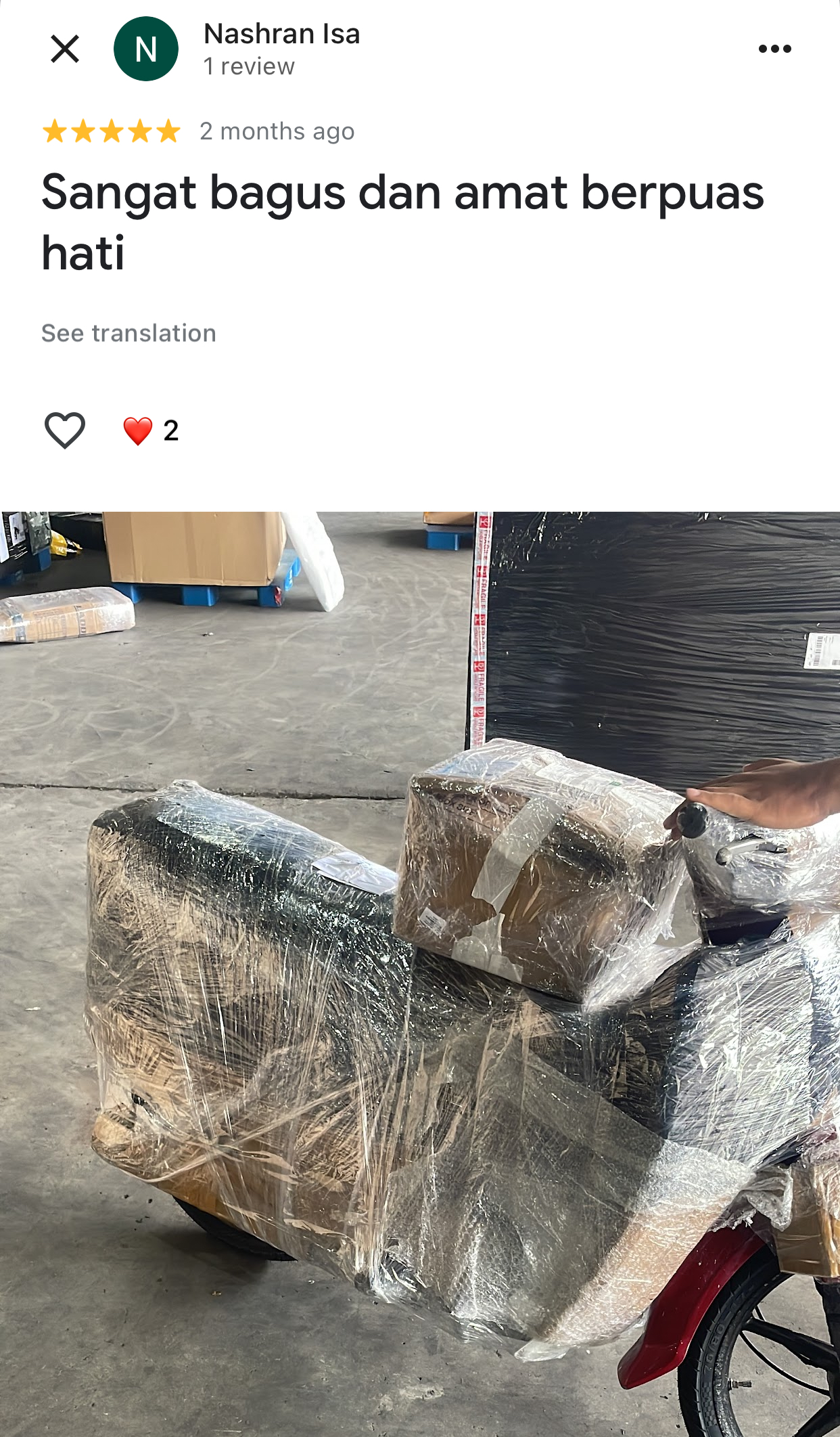 Maklum balas daripada pelanggan kami yang berpuas hati dengan perkhidmatan penghantaran motosikal dari JB ke seluruh Semenanjung Malaysia.